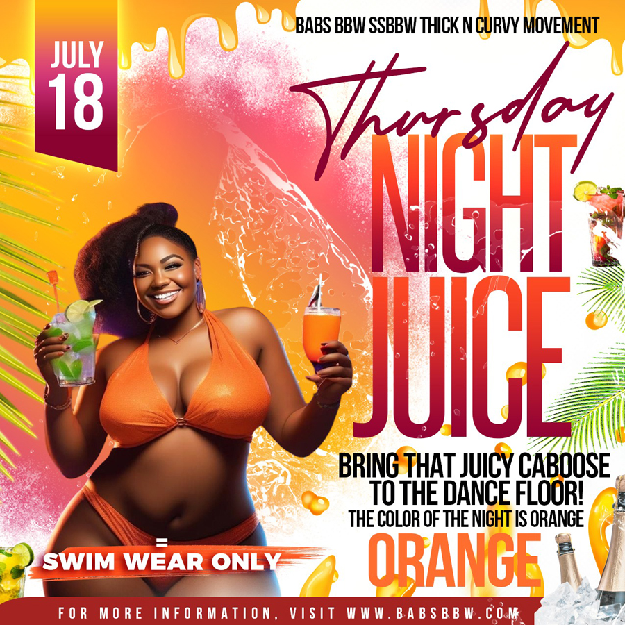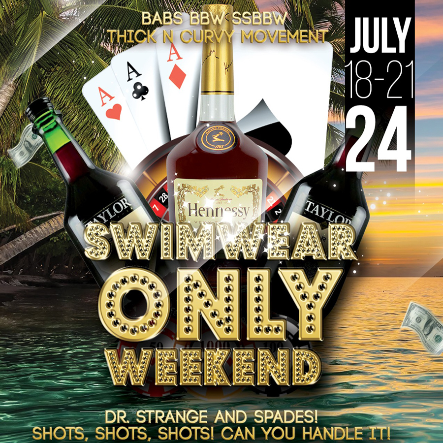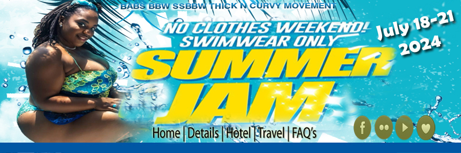 Big Fat Fun in the Summertime Swimwear Only all weekend long! Mark your calendars for July 18-21,2024 "Dive into Summer with 4 parties in 3 days and it’s a swimwear-only weekend. Pack light with a bikini, one piece, or thong suit. Feel free in whatever makes your fluffy body look good. Fellas swim trunks or speedos are necessary,